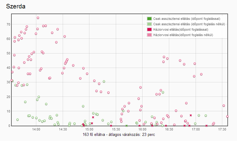 - az élő rendelési információkon túl várakozási idő statisztikák állnak rendelkezésére, melyek alapján foglalt időpont hiányában is olyan időpontot választhat az orvosi ellátásra, amikor általában kevés várakozó szokott lenni.