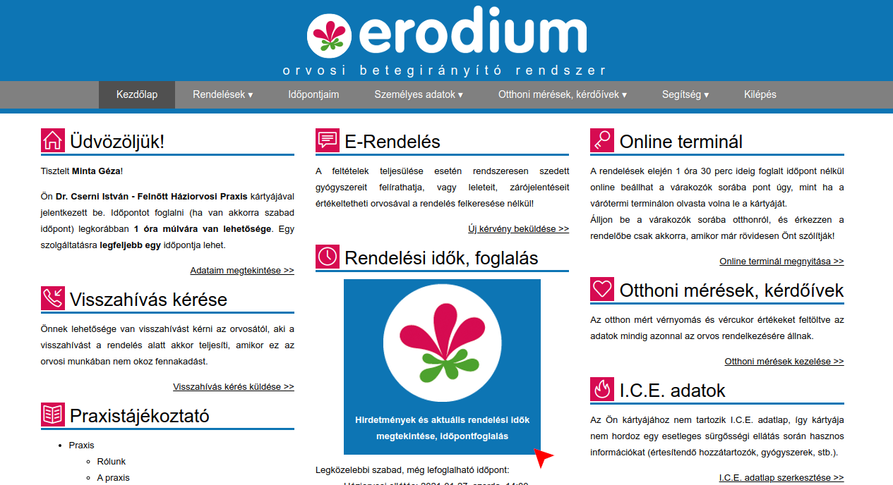Az Ön számára lefoglalt időpontokat bármikor ellenőrizheti az Időpontjaim menüben. Erodium fiókjából a Kilépés menü segítségével léphet ki.